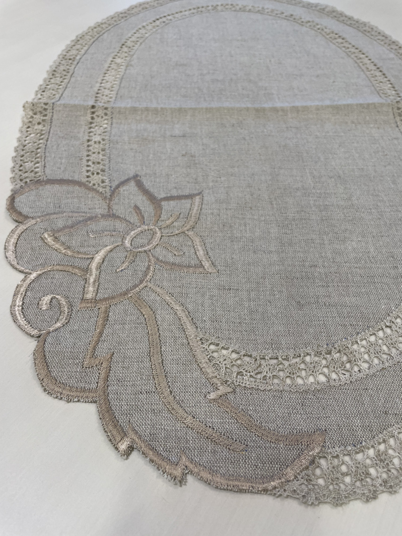 100% лен неотбеленный, мерное кружево, вышивка НХП "Баратто"