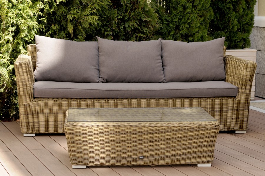 "Капучино" диван из искусственного ротанга трехместный, цвет соломенный