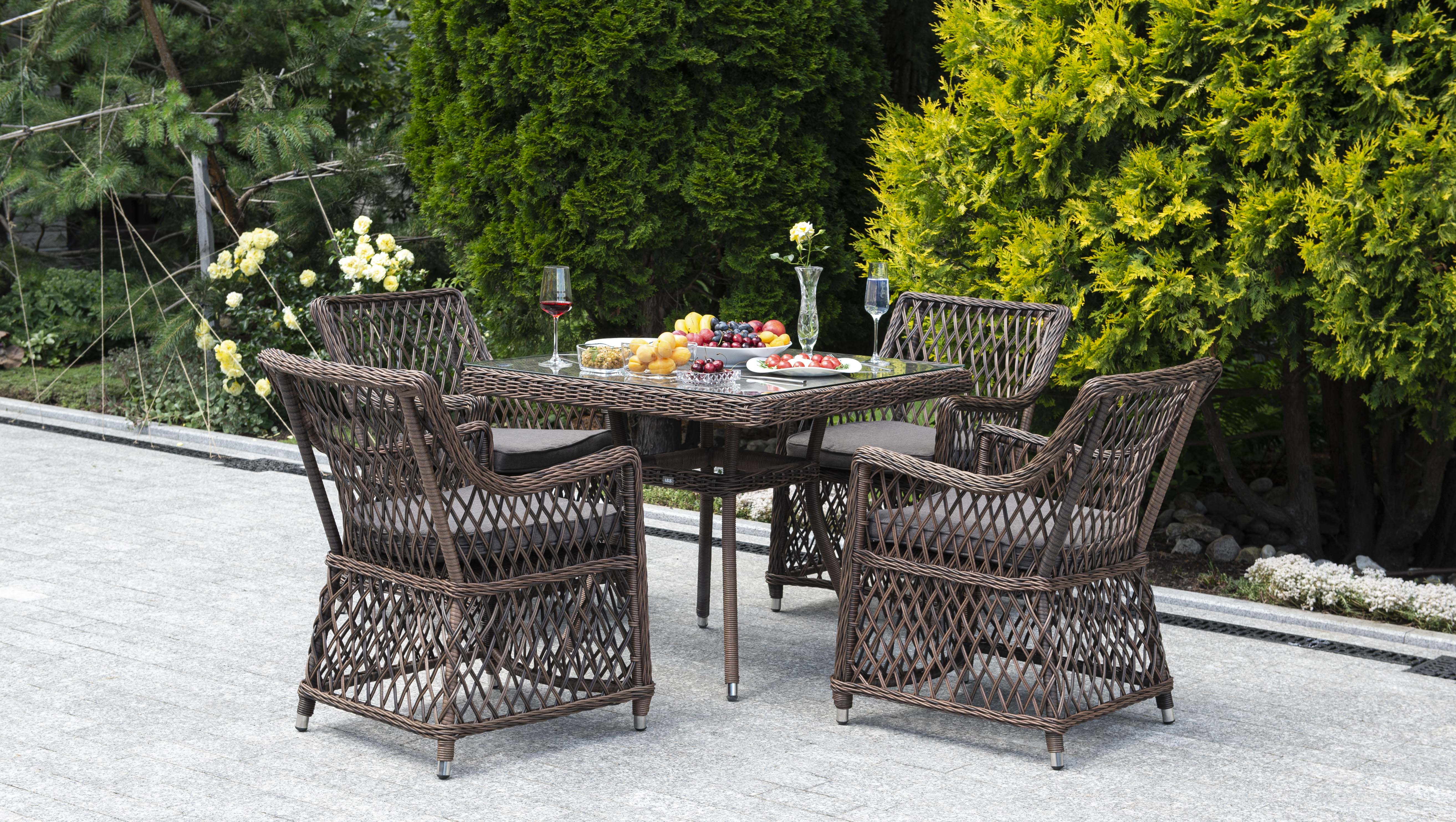 "Айриш" обеденная группа плетеная на 4 персоны, цвет коричневый