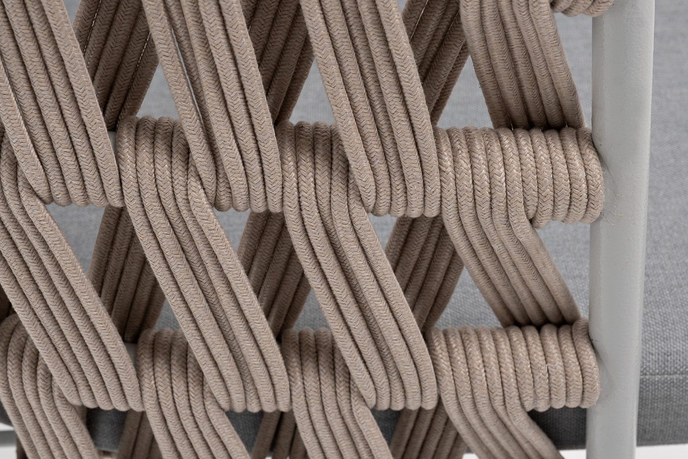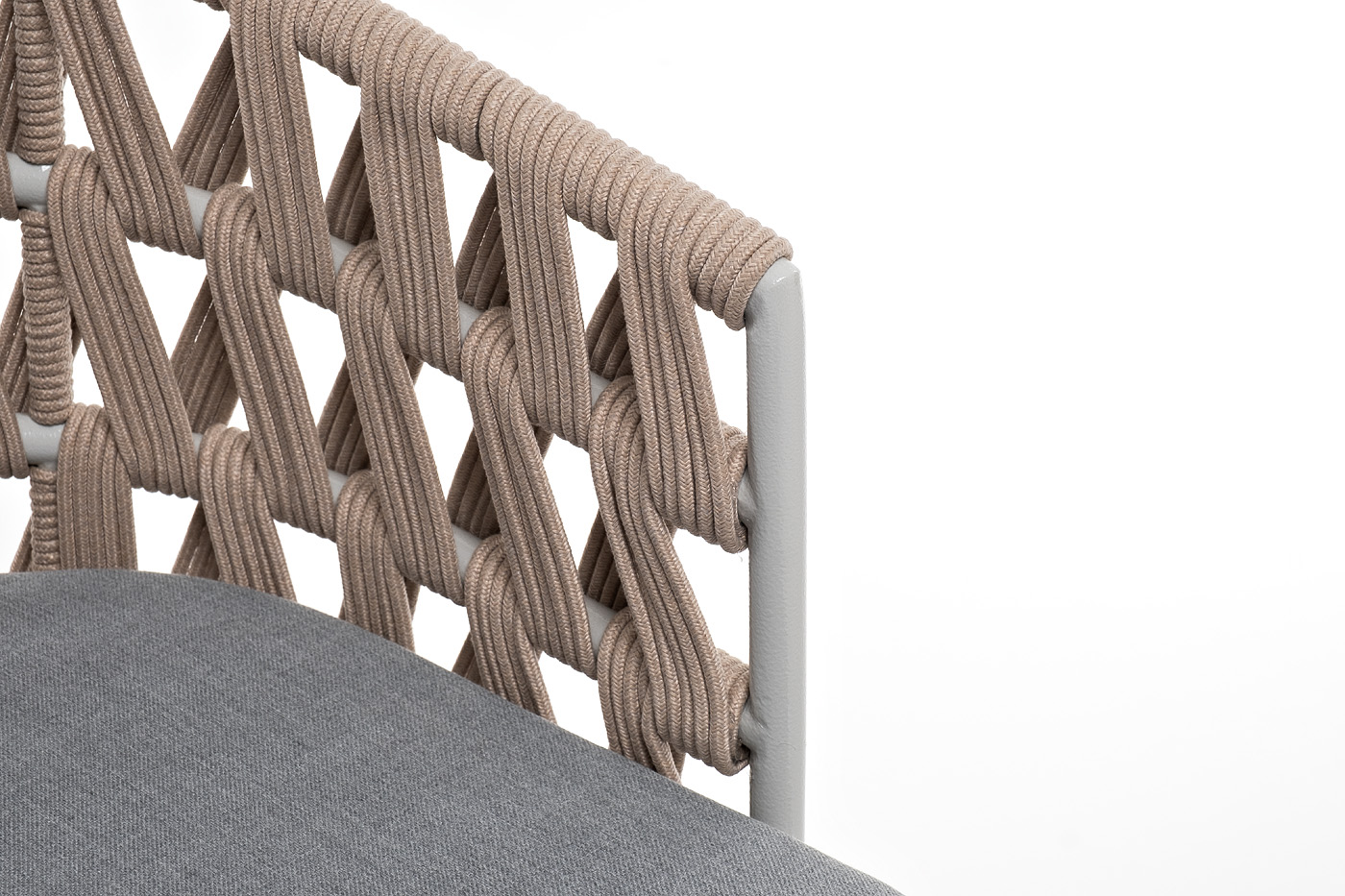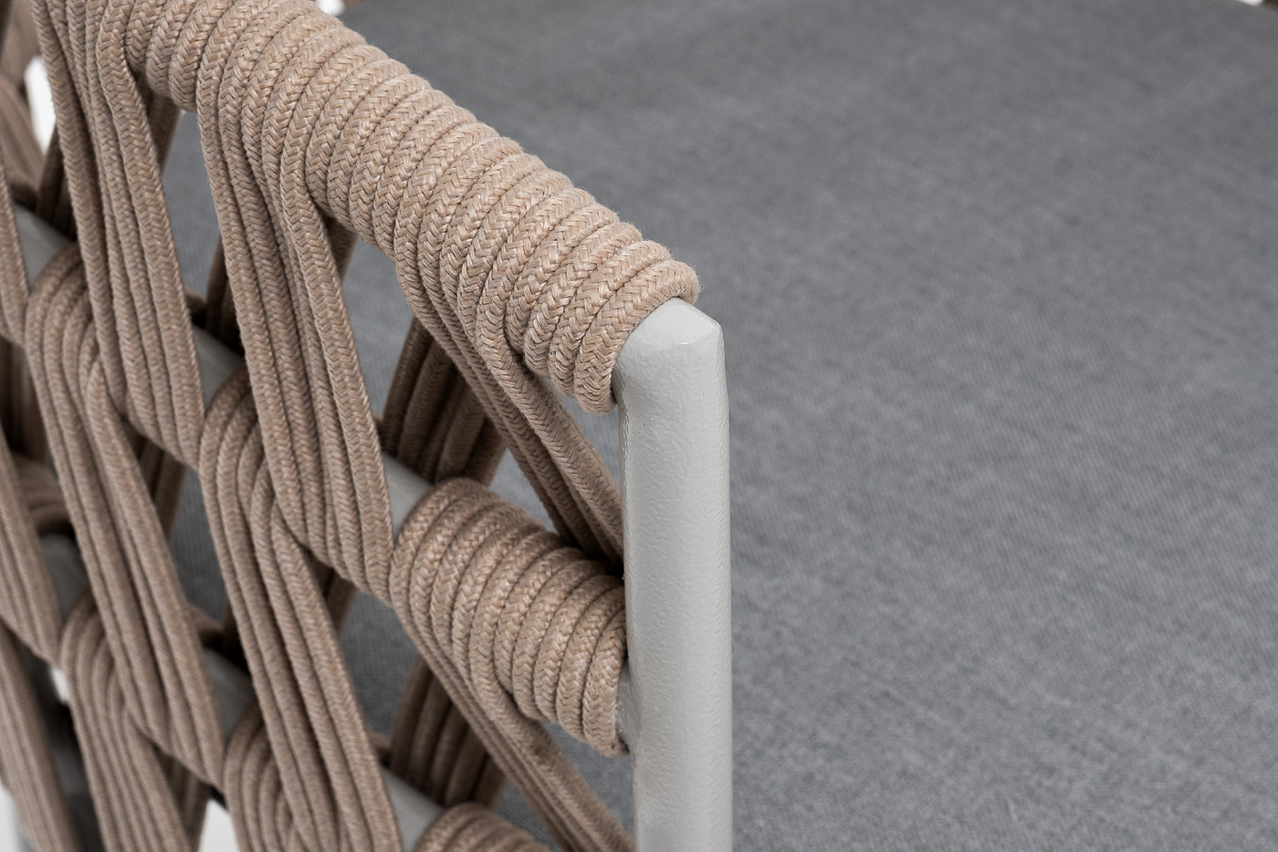 "Диего" стул плетеный из роупа, каркас из стали светло-серый (RAL7035) муар, роуп бежевый круглый, ткань светло-серая